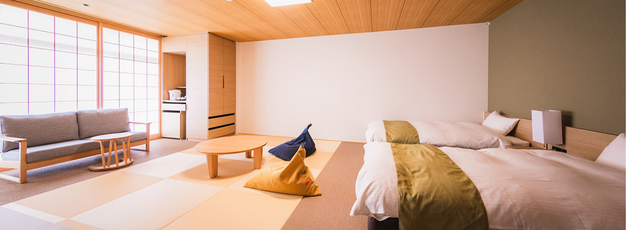和室を中心にさまざまなタイプのお部屋をご用意いたしております。ベッドをお好みのお客様には和洋室又は洋室を。和室では、岩風呂や檜風呂のある特別室もございます。