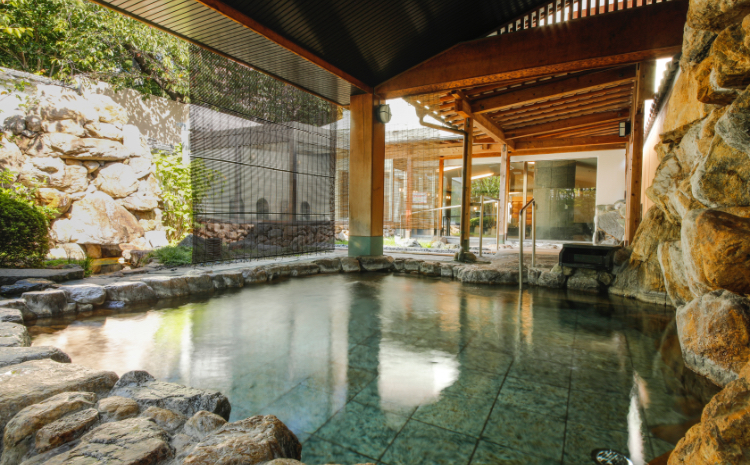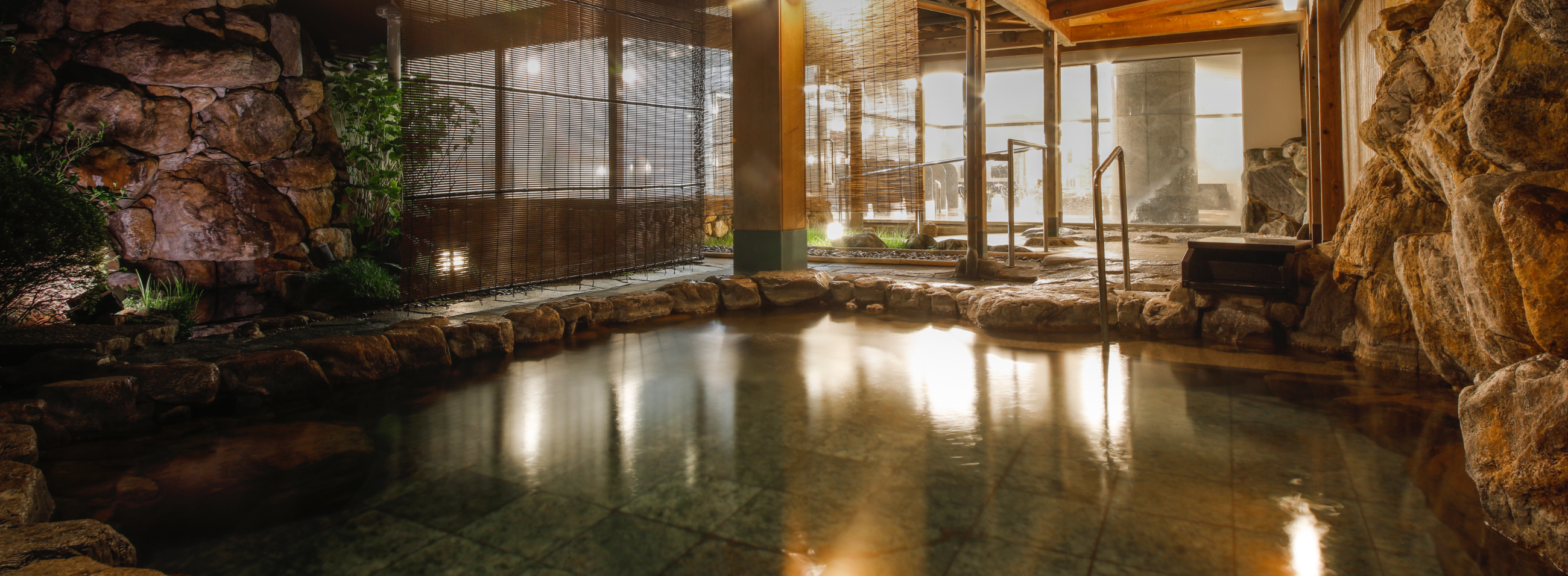 アルカリ性単純泉のお湯は、透明で湯ざわりも柔らかく、身体によく馴染みます。そのお湯をひく大浴場は、1日の疲れをゆったりと癒せるよう御影石(みかげいし)で作られており、落ち着いた雰囲気をかもし出しています。